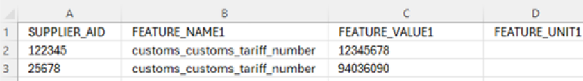 FEATURE_VALUE1 | 23564851 | 8-digit customs tariff number |